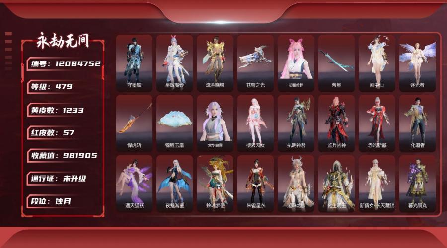 通天狐袄,护世四法·广目天王,玄绶罗衣,夏日派对·赤夏悠漾,春日序曲·赤羽,黄昏巫主,封神录·妲己,梨园传奇·丽娘,武道无穷·形意,日影花阴
